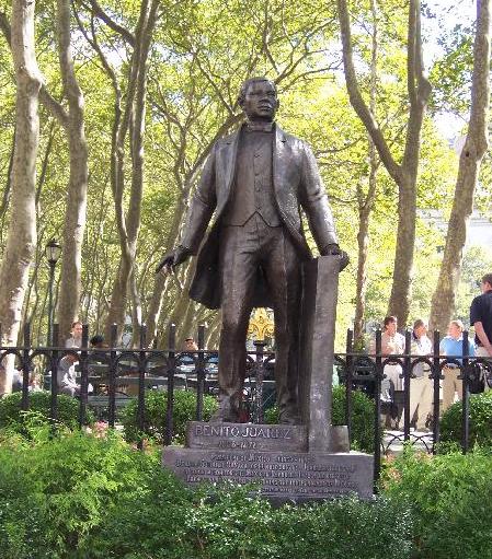 he Juárez Monument stands along Avenue of the Americas between 41st and 42nd Streets, on the perimeter of Bryant Park, in a symmetrical position to the existing sculpture of José Bonidacio de Andrada e Silva (1763–1838), the Brazilian leader. With the addition of Juárez, seven sculptures of Latin American leaders now overlook the Avenue of the Americas.